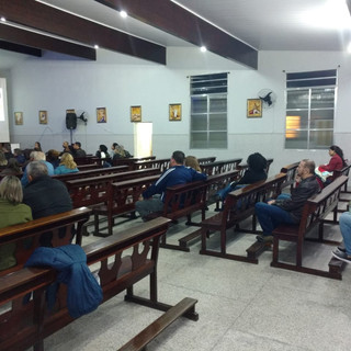 No dia quatro de junho aconteceu a Noite de Reflexão na comunidade Nossa Senhora dos Navegantes, que ficou a cargos das equipes Filhos do Céu e Sagrada Família. Iniciamos com uma música de acolhida- Reunidos Aqui..., Sinal da Cruz cantado, Invocamos o Espírito Santo, rezamos dezena e saudamos todos com boas- vindas. Refletimos sobre a importância do batismo lembrando a pessoa de João Batista, sua missão de evangelizar e ser o precursor de Jesus. O Evangelho de São Matheus (1,7-8) narra que: algumas pessoas achavam que João era o Messias, mas ele explicava que alguém maior que ele estava chegando e iria batizar com Espírito Santo. João Batista sabia que Jesus era obediente aos mandamentos de Deus e não precisa se arrepender, por isso achava que Jesus não precisava ser batizado. Mas Deus ordenou que todas as pessoas fossem batizadas, e por isso Jesus disse a João que o batizasse. Após esta introdução as equipes entraram ao som da música: Jesus Manda o Teu Espírito... Proclamamos e encenamos o Evangelho de São Matheus (3,13-17), no momento da encenação cantamos o canto: Vem Oh! Água Viva... Alguns integrantes das equipes foram batizados simbolicamente, inclusive Paulinho nosso convidado representando o Movimento Enjo e também participou de um encontro do MFC, que contribuiu com seu testemunho de vida, apresentando a passagem da vida velha para vida nova a partir do encontro com Jesus. Após seu testemunho escutamos a música: Cura Senhor onde Dói... Assistimos a um vídeo sobre batismo e finalizamos com as duas equipes cantando: Viva o João Batista, Viva o precursor.